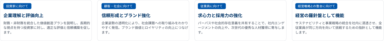 統合報告書は、単なるレポートではなく、対外的な価値訴求と社内的な戦略統合を同時に担う、最重要の経営コミュニケーションツールです。