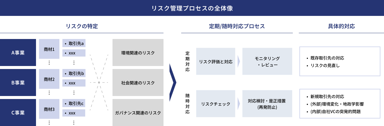 リスク顕在化の防止と発見後の迅速な対応のためにも、「リスクの特定」と「定期・随時の対応プロセス」構築が重要です。