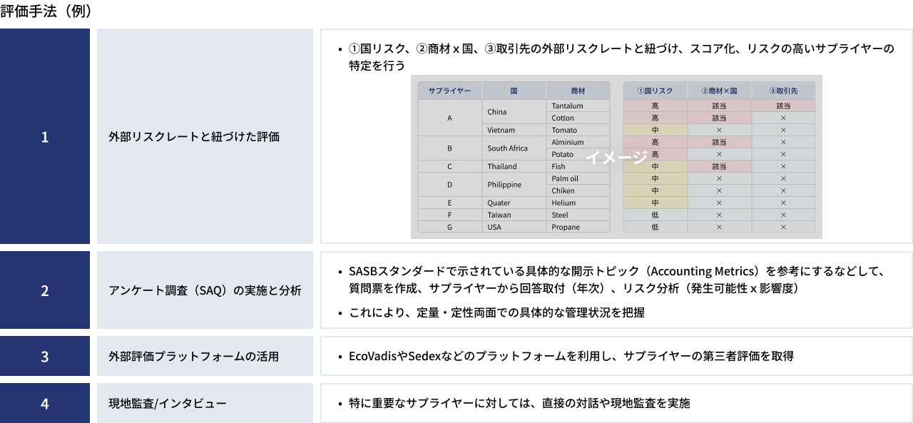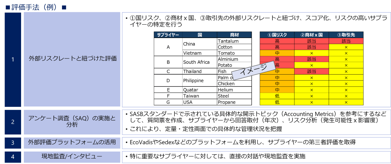 サプライチェーンでの社会・環境・ガバナンスリスク等を評価し